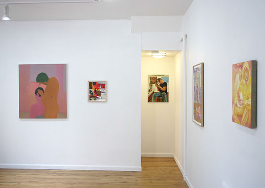 This is not a show that coheres naturally, but related color palettes do their part to overcome major stylistic variance from piece to piece and hold the loose narrative structure. Scenes of intimacy and contentment give way to pensive loners and unpopulated spaces. Moments of sincerity are held in check with self-deprecating irony and de-skilled paint application. Mysterious, imaginative scenes alongside intimate, personal moments give strong romantic overtones despite the cynical mood swings. It’s an impressive beginning for Bannerette.